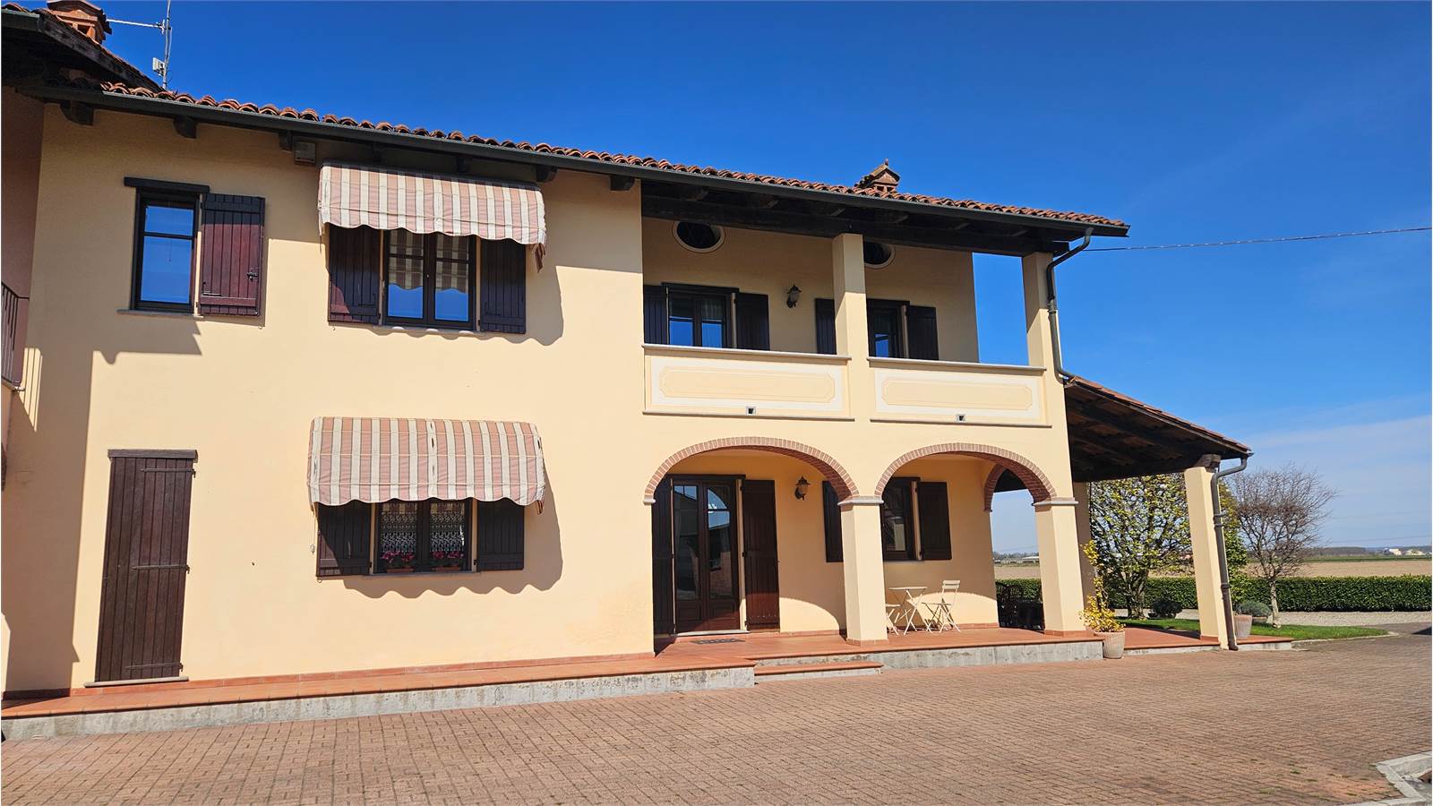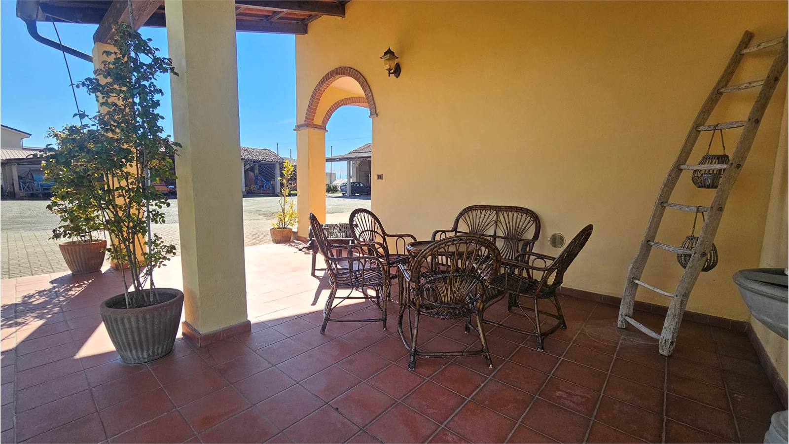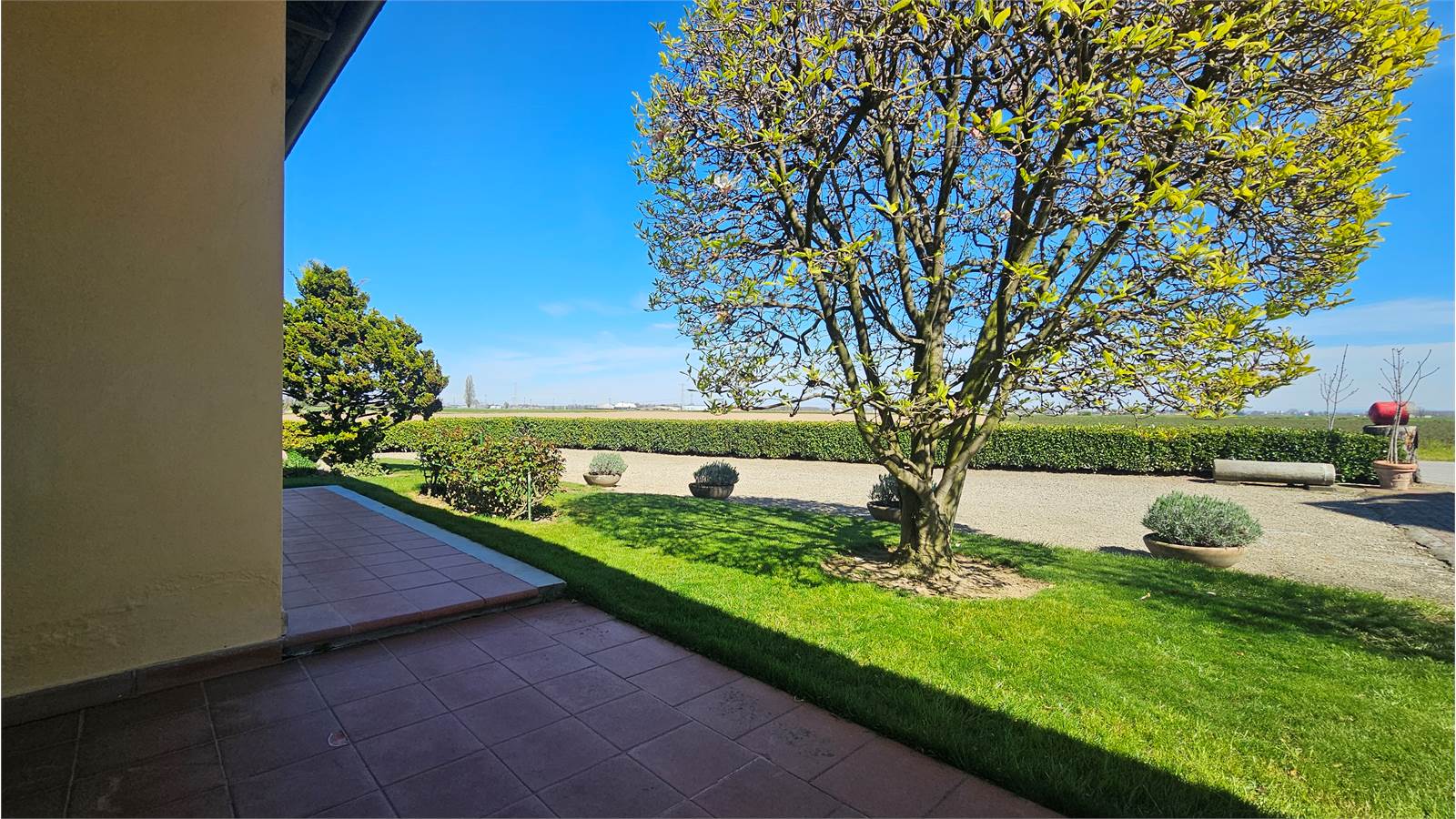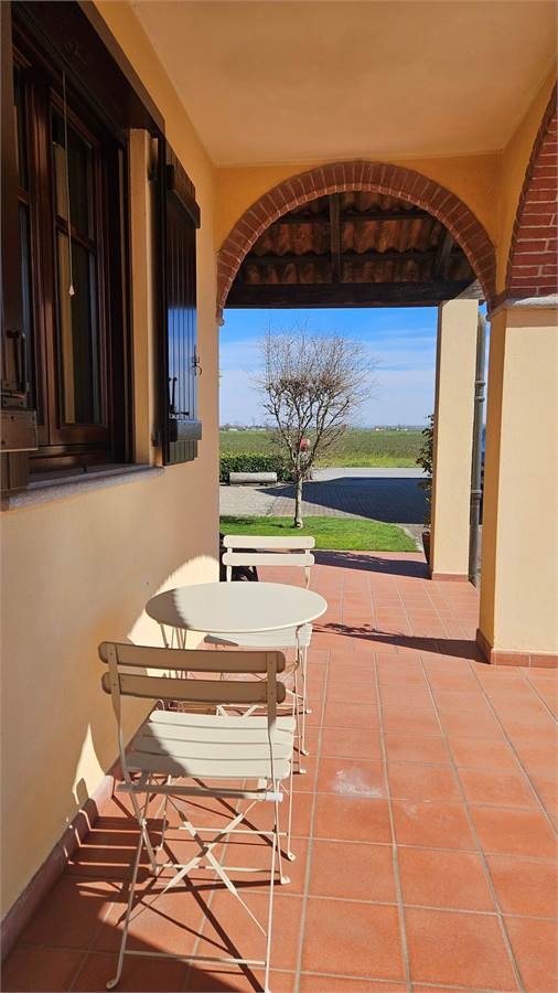 La proprietà, mantenuta in condizioni impeccabili e realizzata con materiali di altissima qualità, gode di un accesso privato che garantisce la massima riservatezza. Ad accogliervi troverete un bellissimo giardino curato che fa da cornice a un ampio e caratteristico porticato. Questo spazio esterno coperto è il vero cuore pulsante della casa durante la bella stagione: l'ambiente ideale dove organizzare cene conviviali con amici e parenti, o dove concedersi momenti di puro relax ammirando la vista aperta sulla campagna circostante.