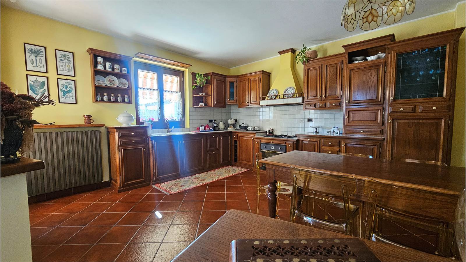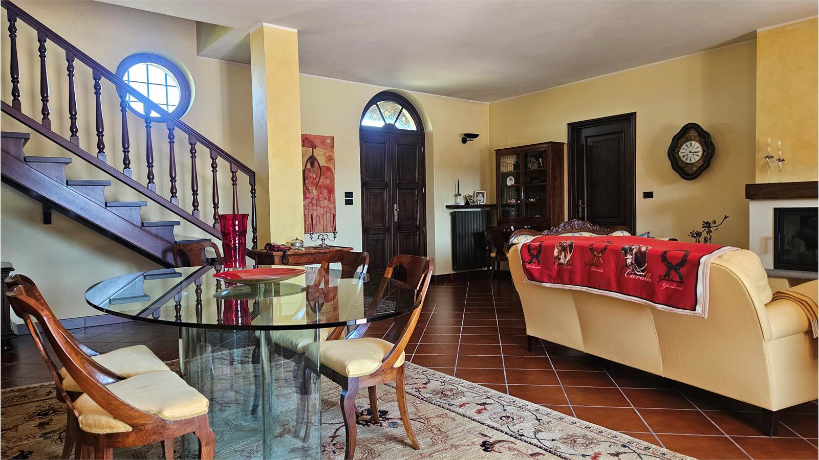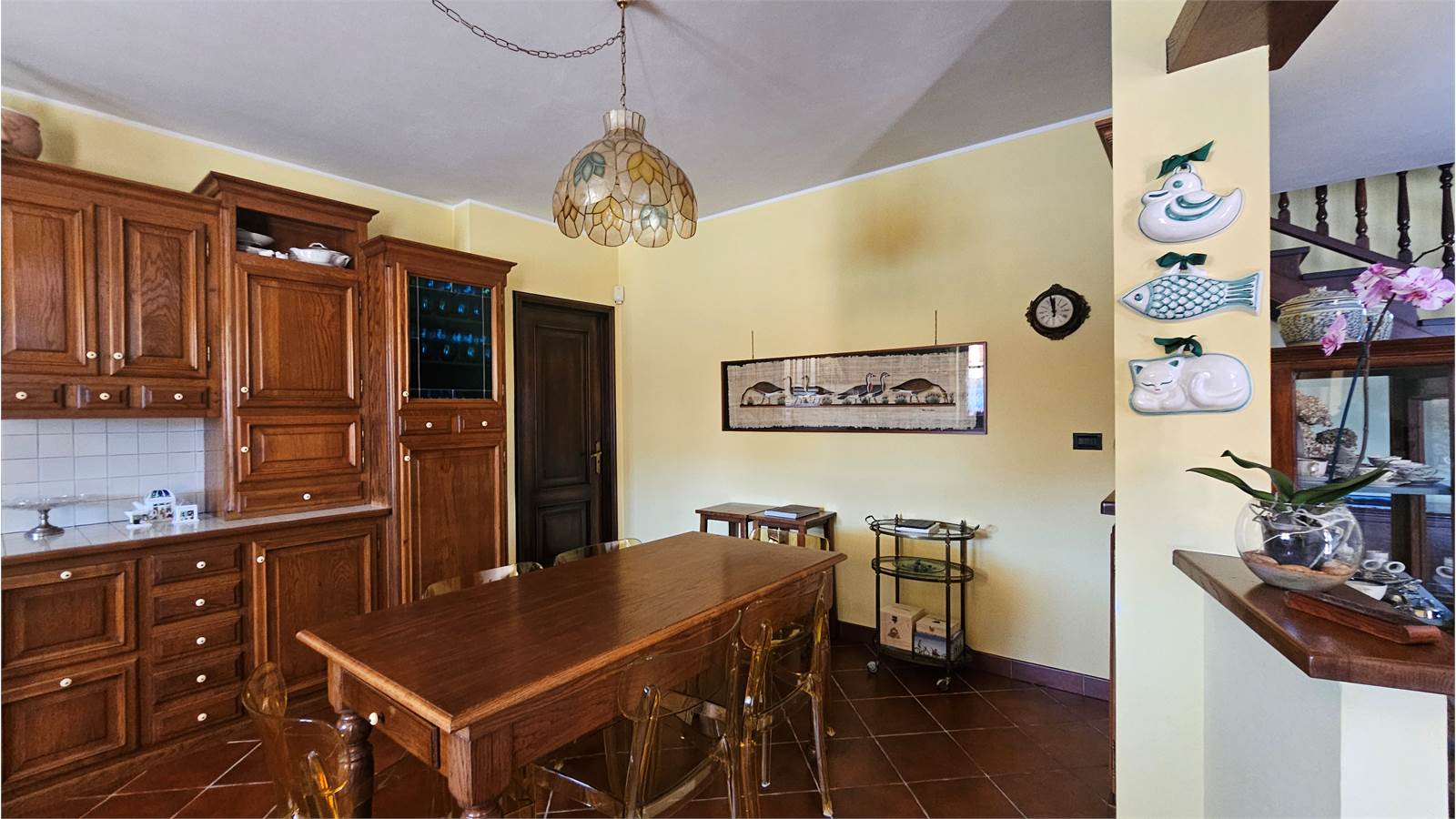Con una metratura generosa di ben 240 mq, gli spazi sono pensati per accogliere comodamente le famiglie numerose. Al piano terra, l'ingresso si apre su un grande e luminoso salone di rappresentanza, impreziosito da pavimenti in cotto e da un elegante camino, perfetto per riscaldare le serate invernali. L'area living dialoga armoniosamente con una cucina abitabile di dimensioni molto generose, dotata di un comodo locale dispensa adiacente. Completano il livello un pratico locale lavanderia e un primo bagno di servizio.