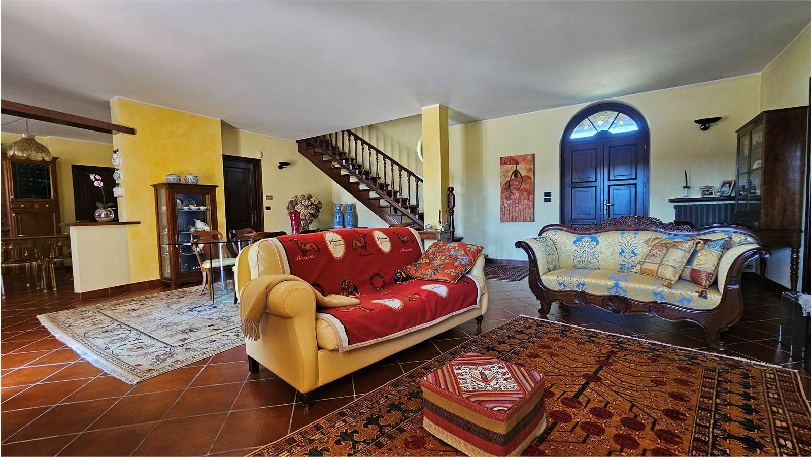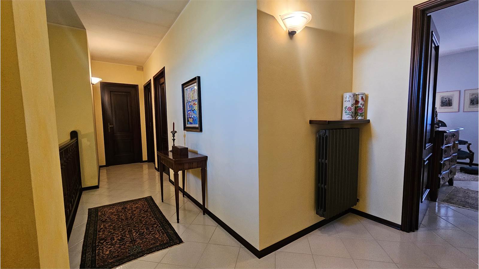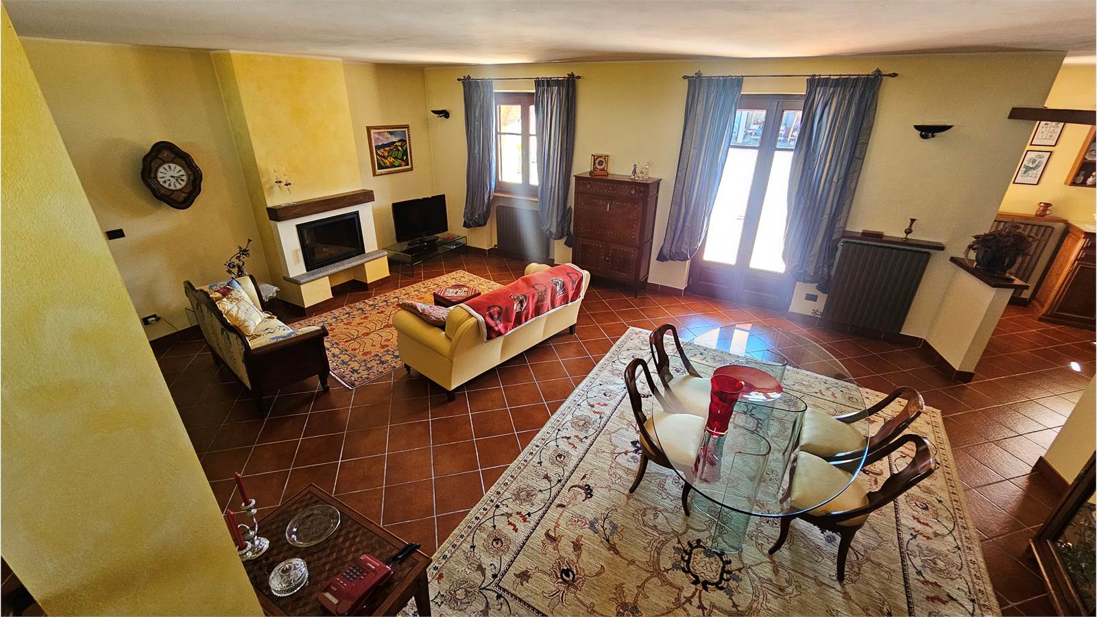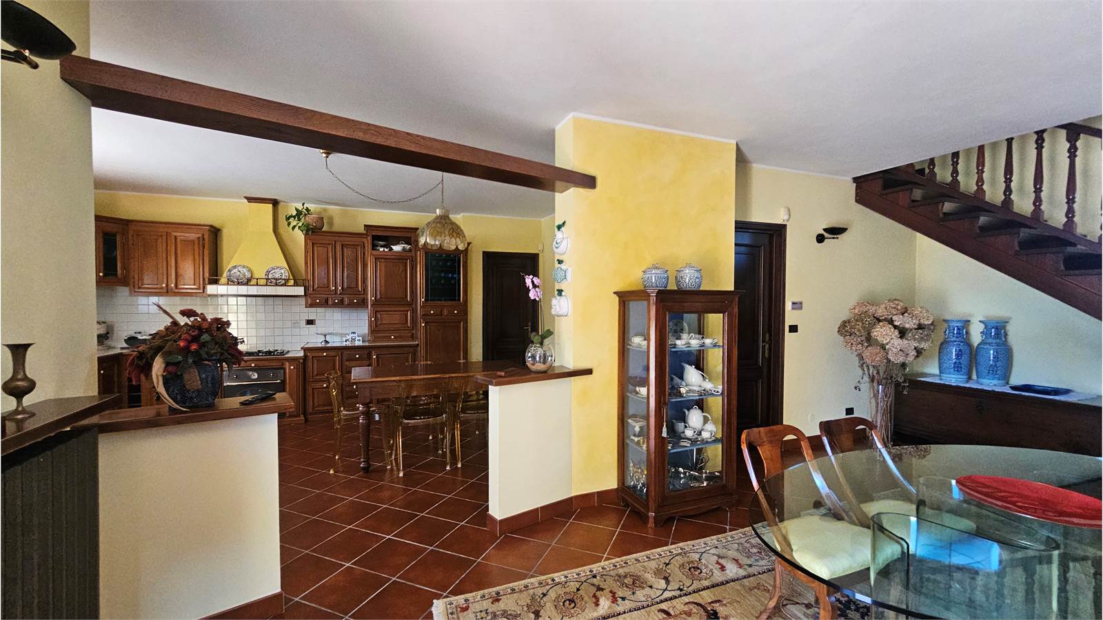 Con una metratura generosa di ben 240 mq, gli spazi sono pensati per accogliere comodamente le famiglie numerose. Al piano terra, l'ingresso si apre su un grande e luminoso salone di rappresentanza, impreziosito da pavimenti in cotto e da un elegante camino, perfetto per riscaldare le serate invernali. L'area living dialoga armoniosamente con una cucina abitabile di dimensioni molto generose, dotata di un comodo locale dispensa adiacente. Completano il livello un pratico locale lavanderia e un primo bagno di servizio.
