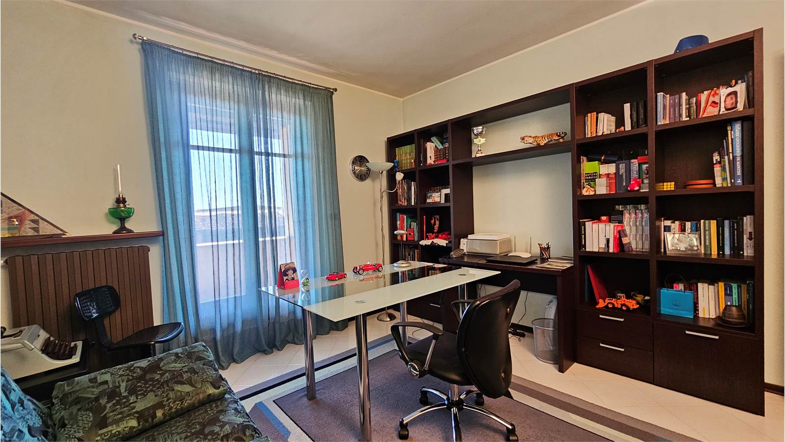 Una bellissima e scenografica scala in legno a vista vi condurrà al primo piano, interamente dedicato al riposo e alla privacy. La zona notte si compone di tre ampie camere da letto matrimoniali – di cui una dotata di un'esclusiva cabina armadio finestrata – e di un locale studio, ideale per chi lavora in smart working o per i compiti dei ragazzi.