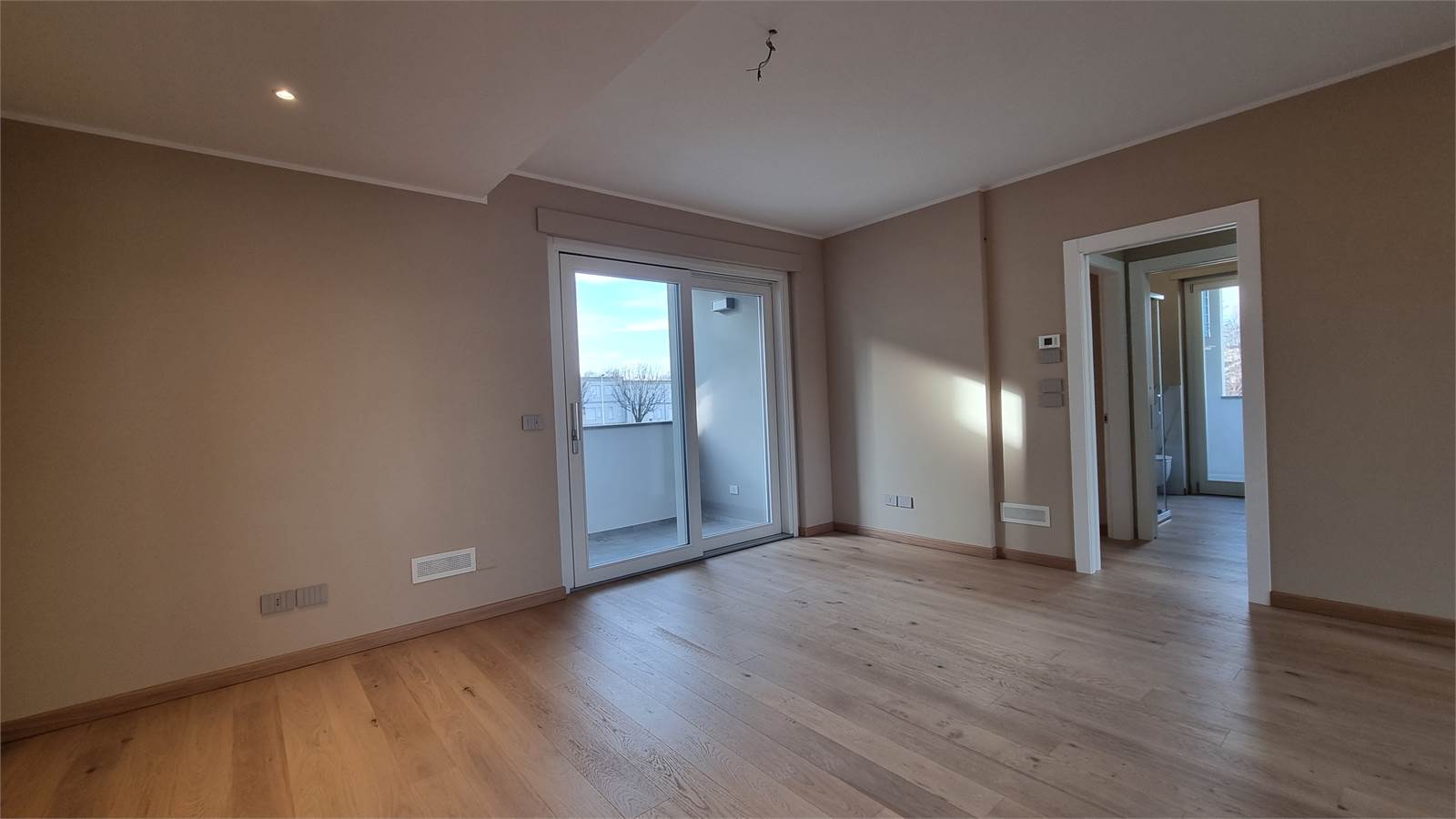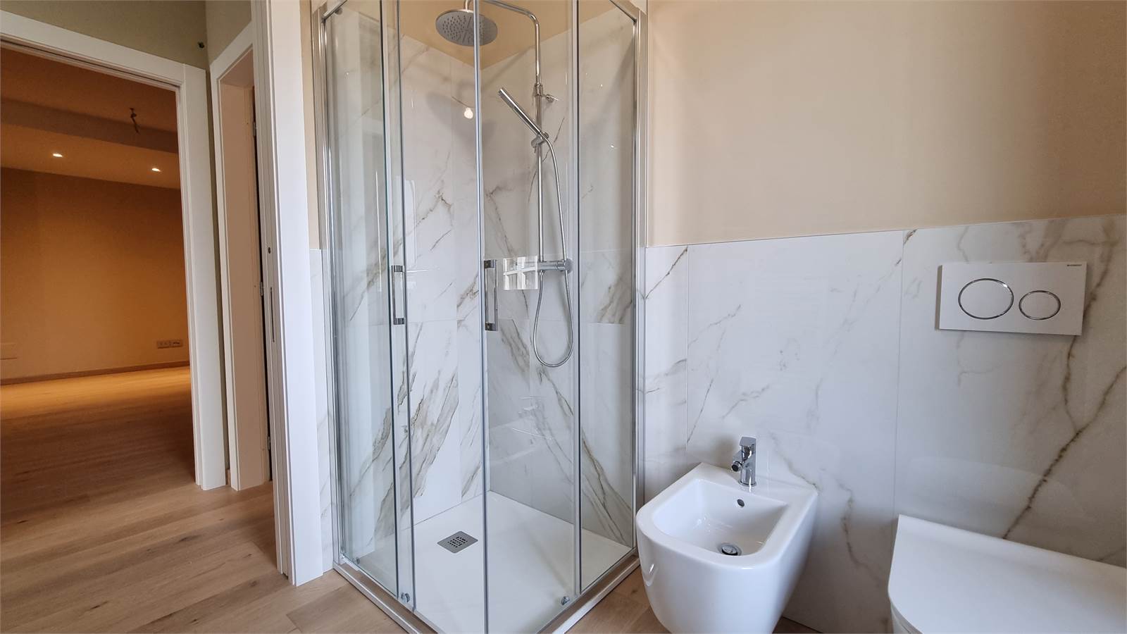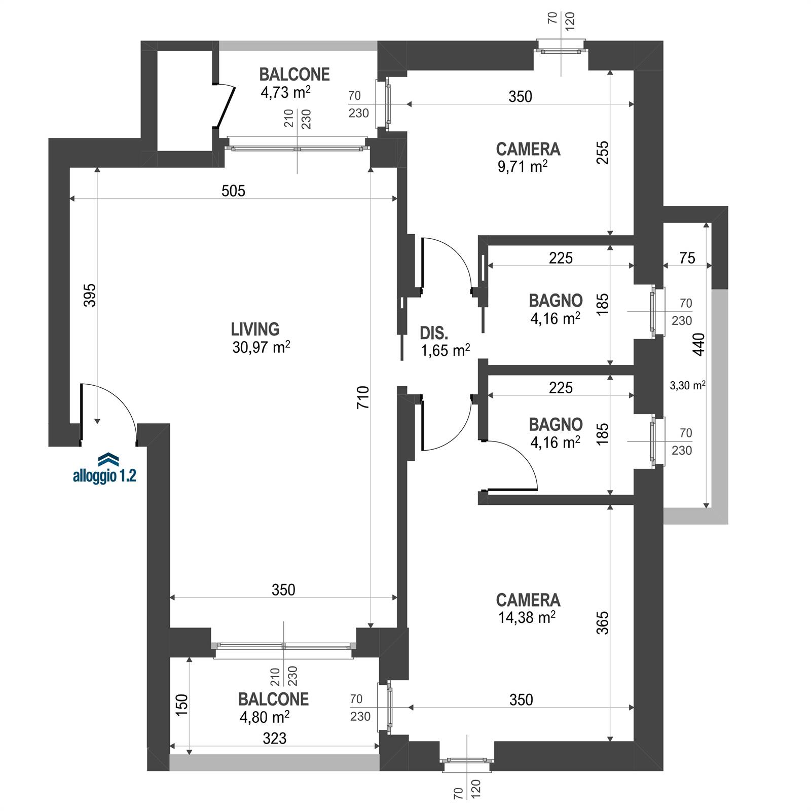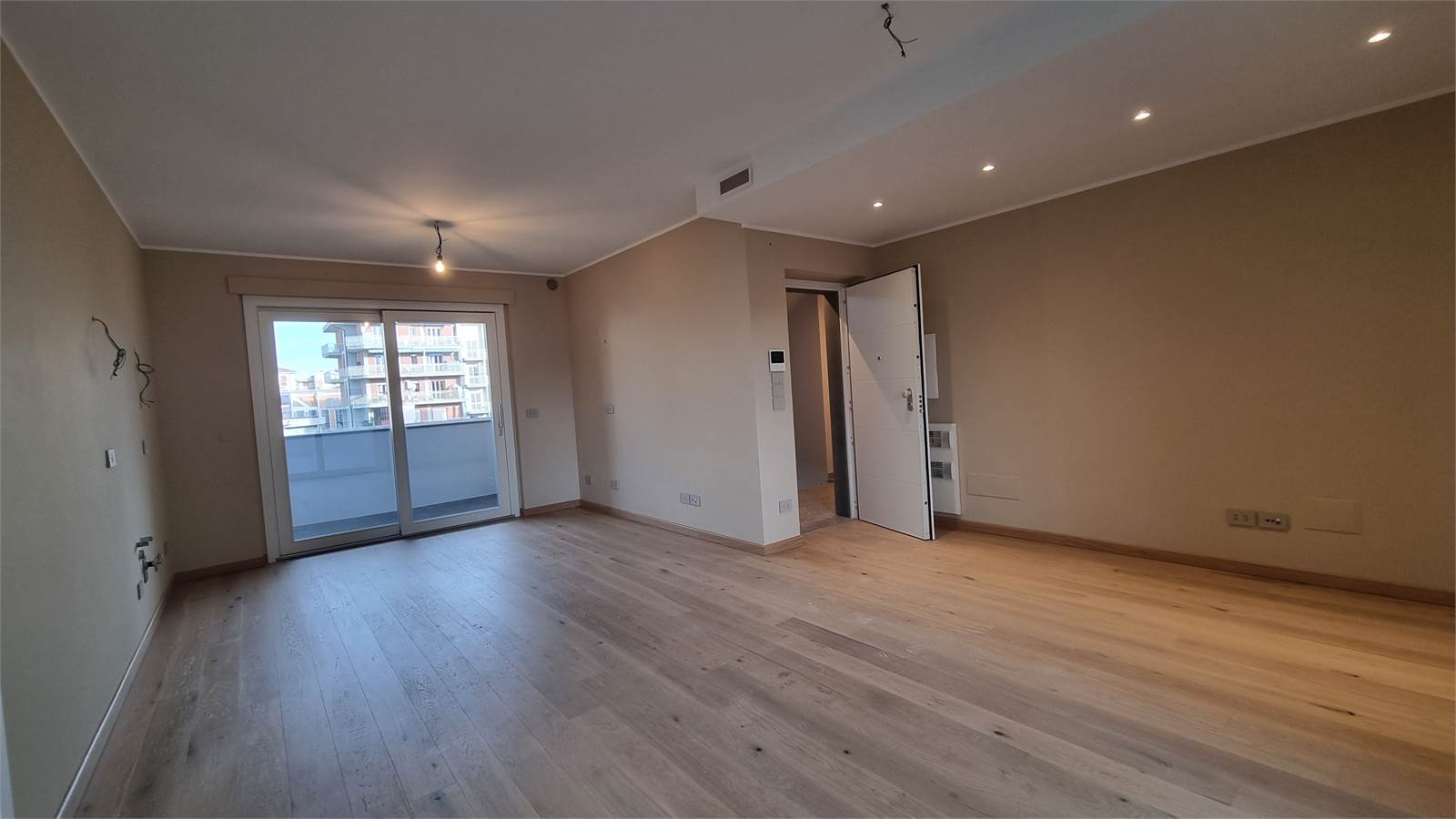 L'APPARTAMENTO E' AL PIANO PRIMO, ESPOSIZIONE EST OVEST NORD COMPOSTO DA INGRESSO SU SOGGIORNO CON CUCINA LIVING (POSSIBILITA' DI CHIUDERLA), DUE CAMERE DA LETTO, DOPPI SERVIZI FINESTRATI, TERRAZZO, BALCONE.