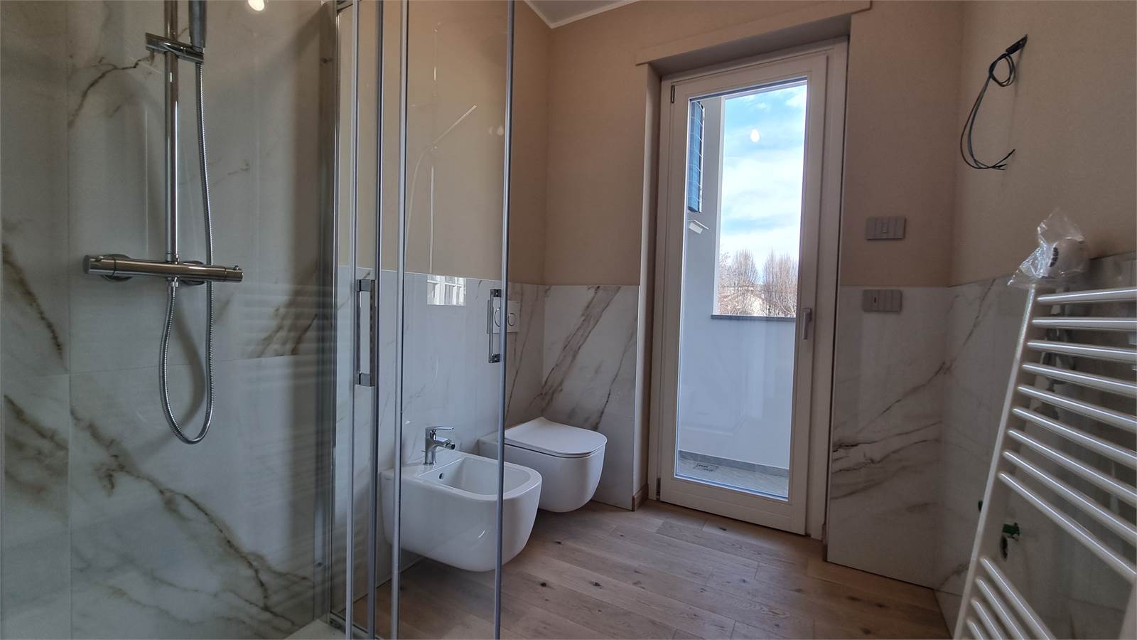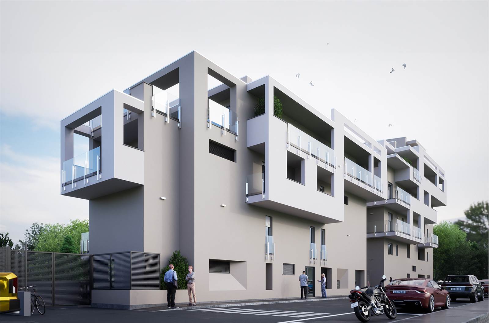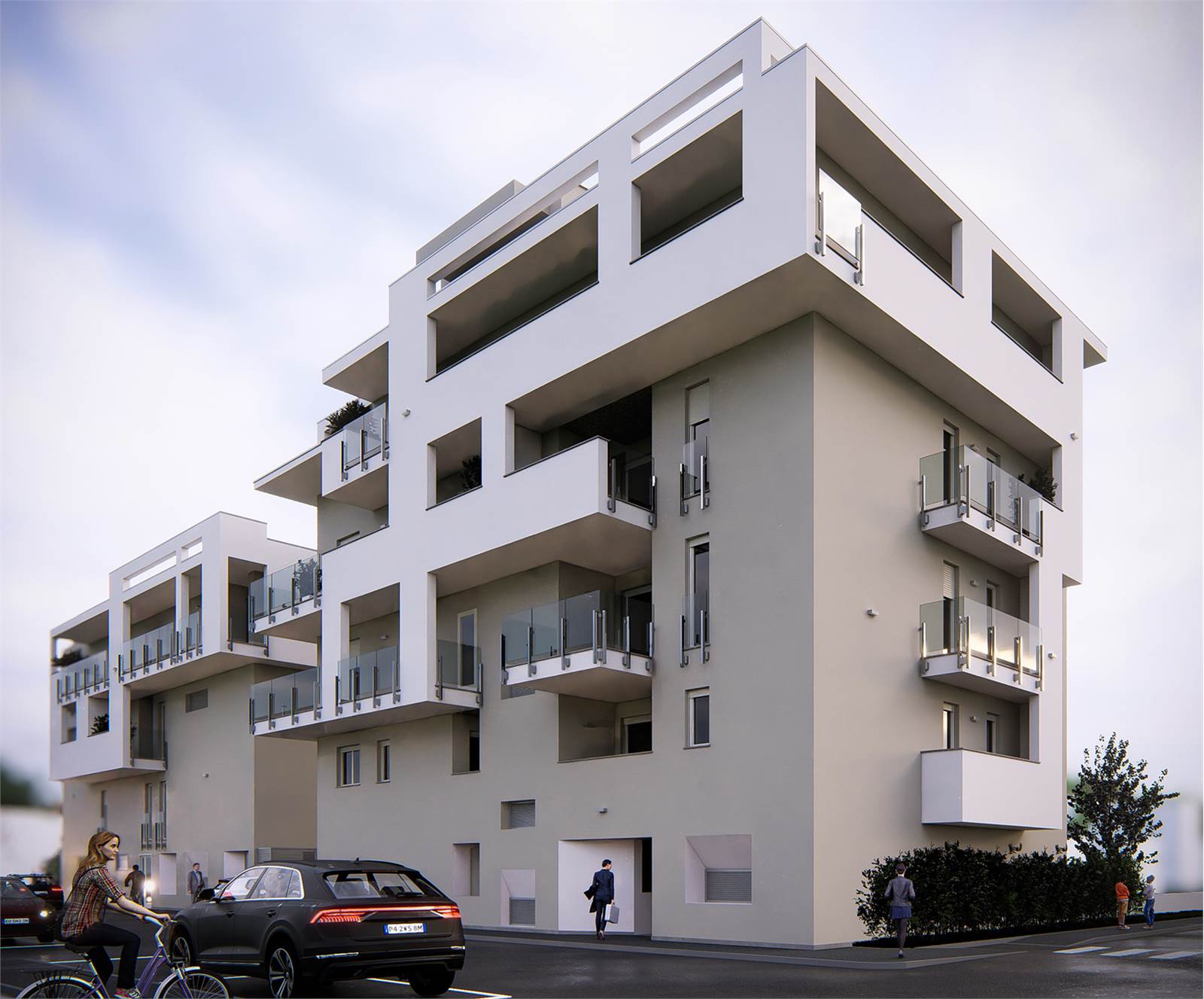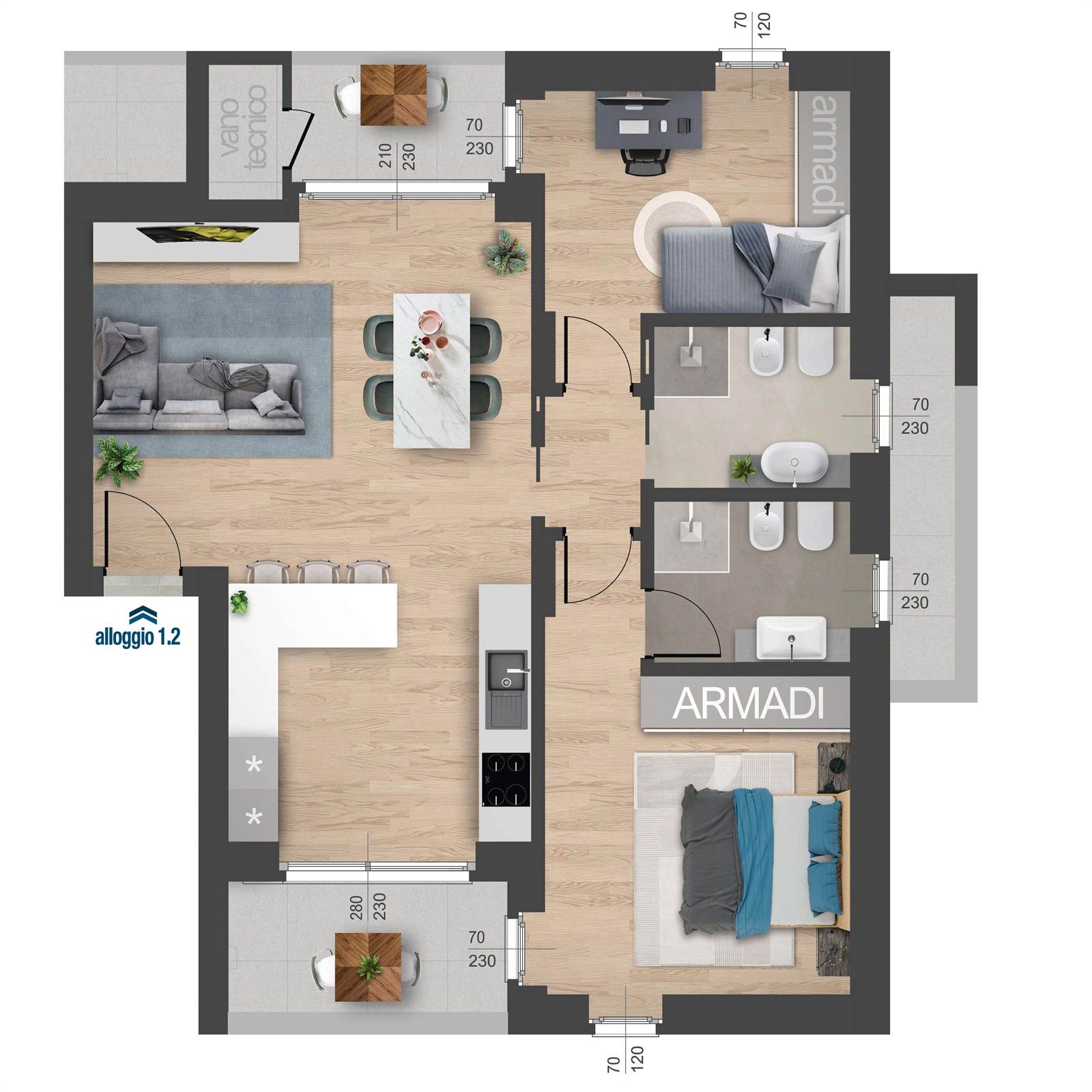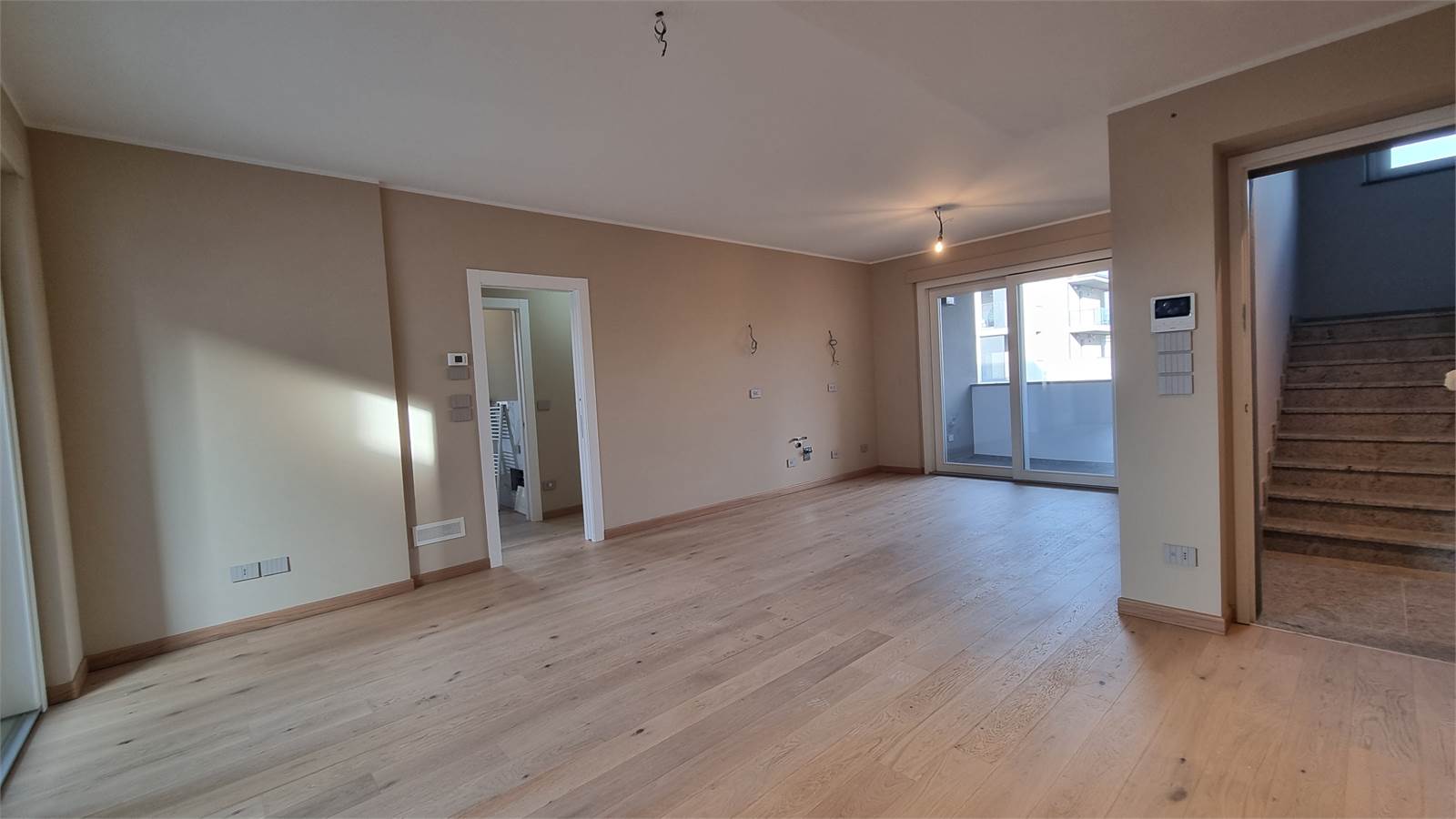 L'APPARTAMENTO E' AL PIANO PRIMO, ESPOSIZIONE EST OVEST NORD COMPOSTO DA INGRESSO SU SOGGIORNO CON CUCINA LIVING (POSSIBILITA' DI CHIUDERLA), DUE CAMERE DA LETTO, DOPPI SERVIZI FINESTRATI, TERRAZZO, BALCONE.
