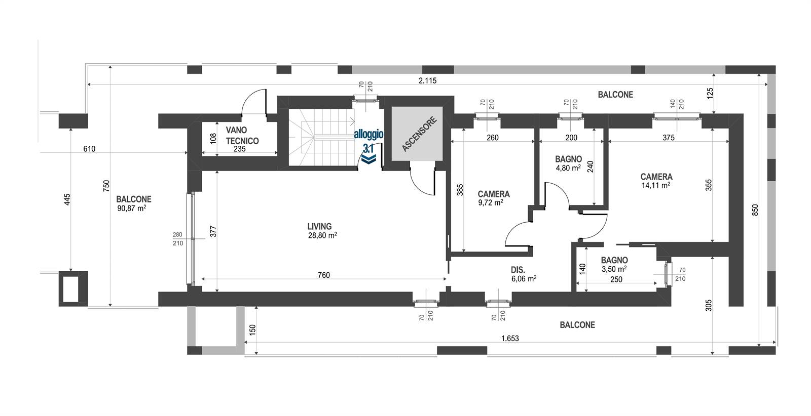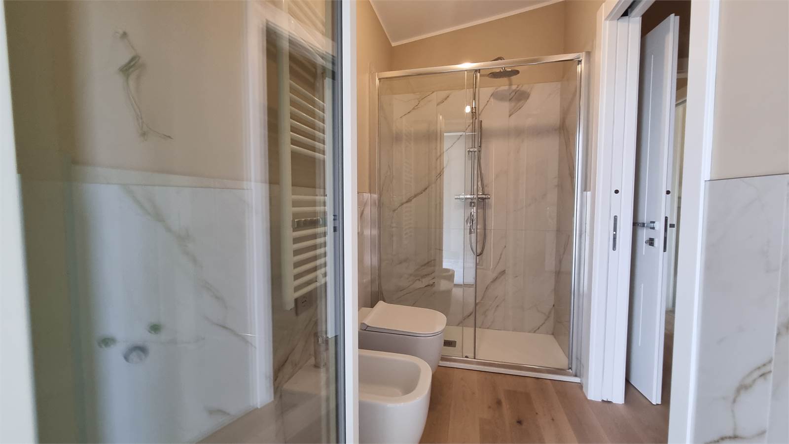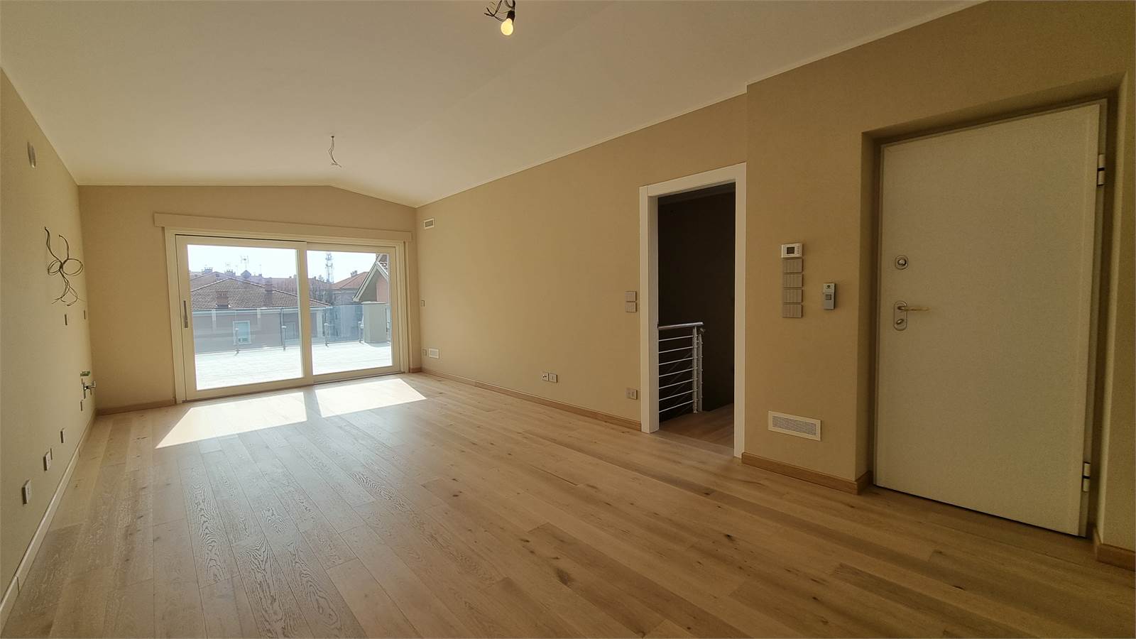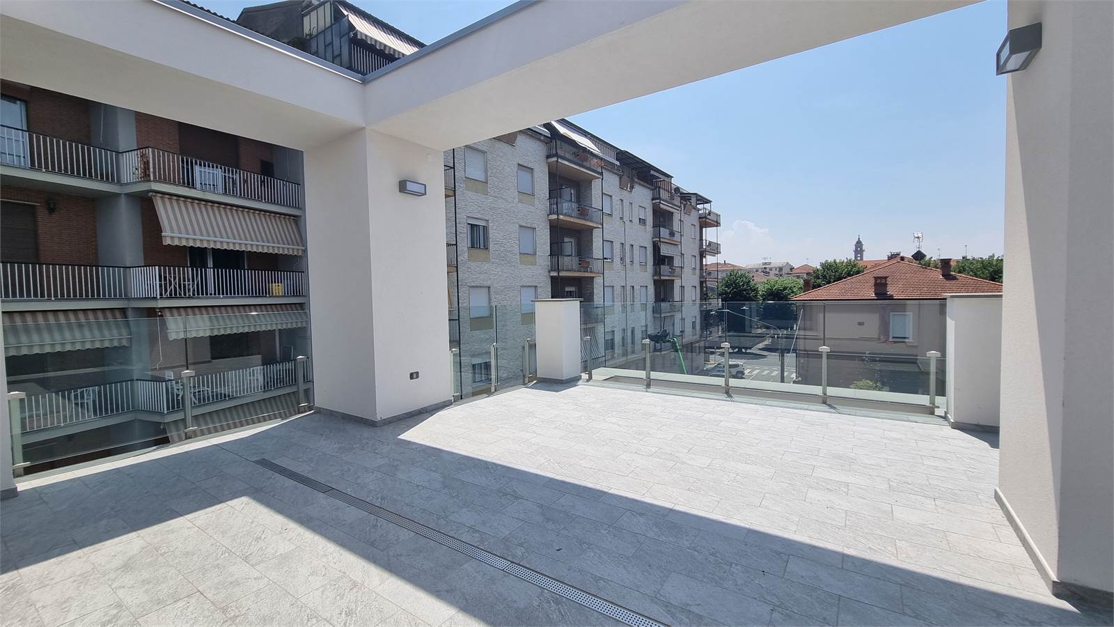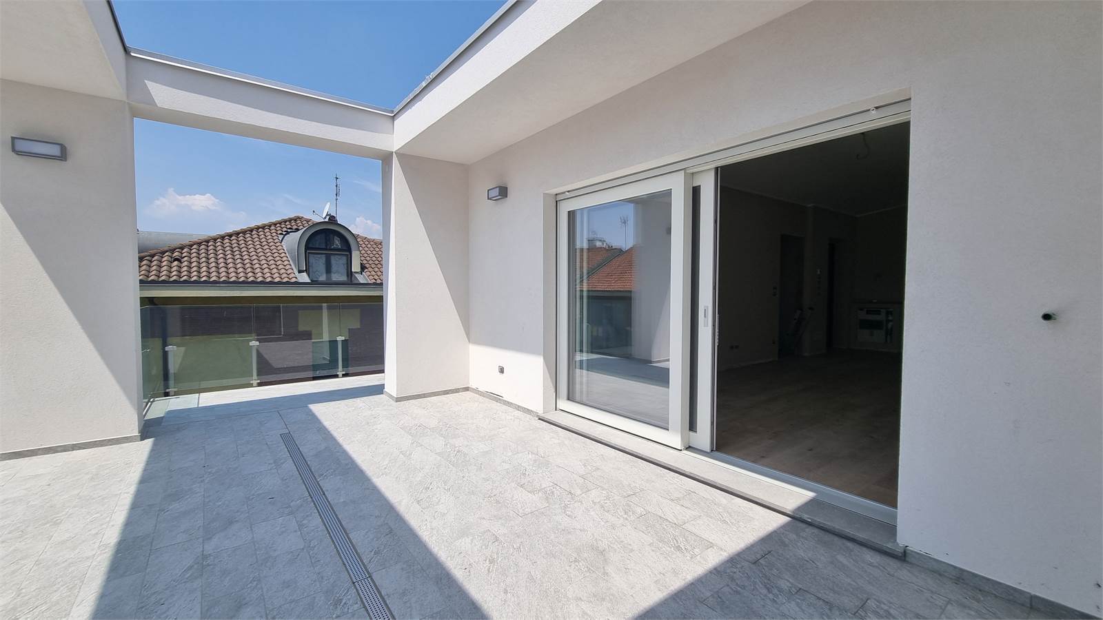 L'APPARTAMENTO HA ESPOSIZIONE SUD - EST - OVEST, ED E' COSI' COMPOSTO: ALLOGGIO AL PIANO TERZO ED ULTIMO CON INGRESSO SU SOGGIORNO CON CUCINA LIVING, DISIMPEGNO, DUE CAMERE DA LETTO, DI CUI UNO CON BAGNO DEDICATO, SECONDO BAGNO, GRANDE TERRAZZO A SUD E BALCONE SUGLI ALTRI 3 LATI.