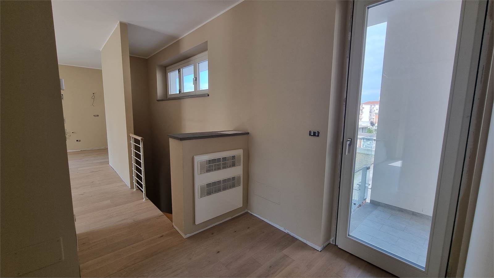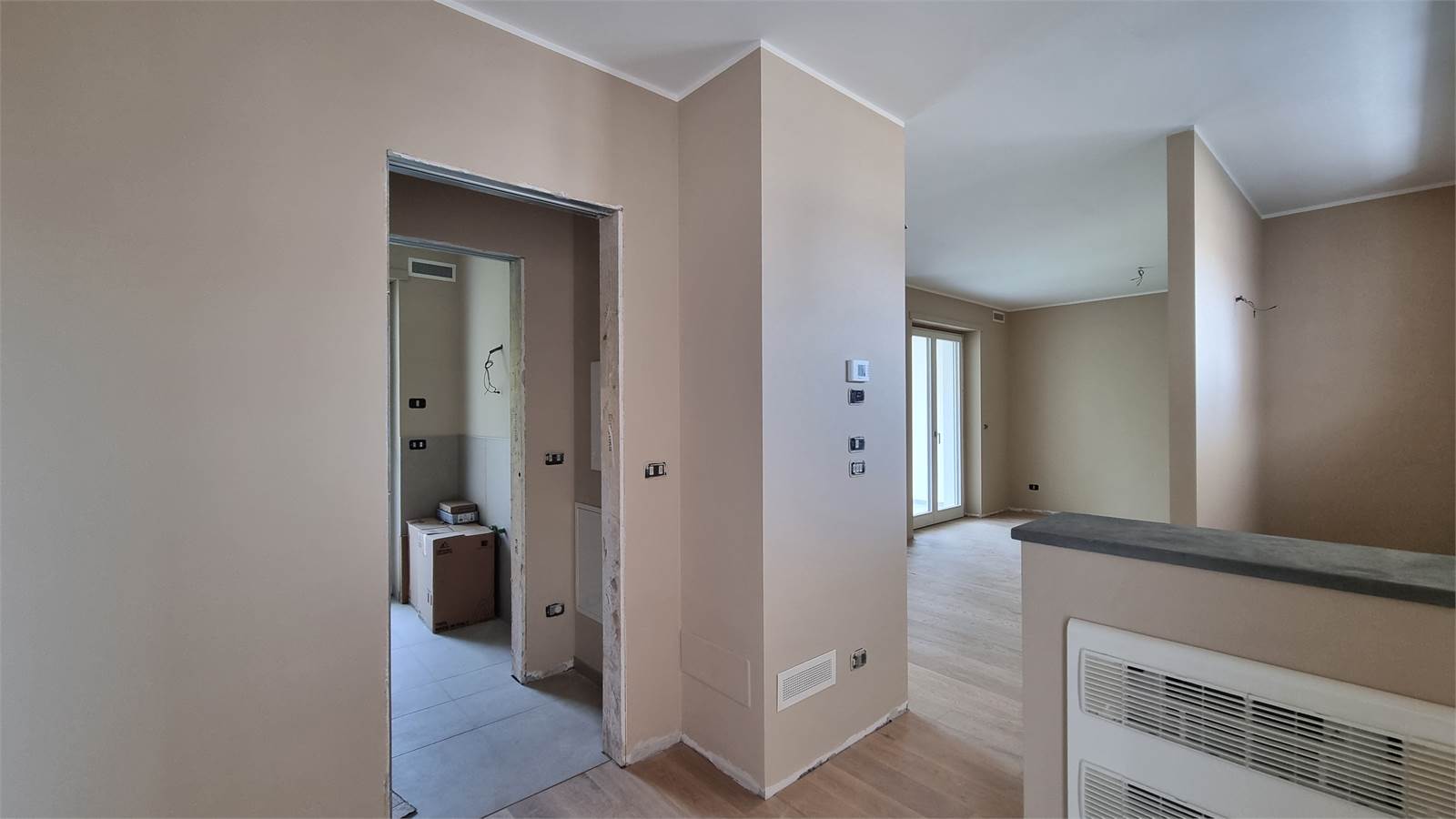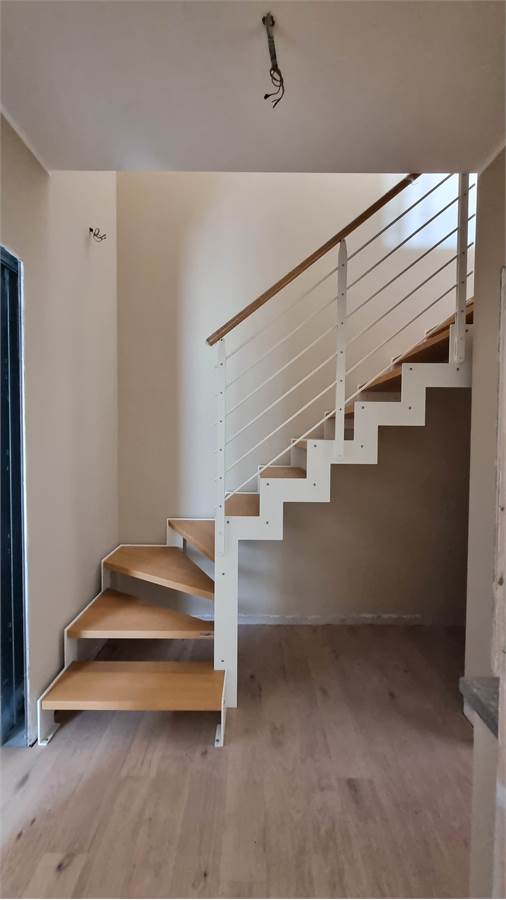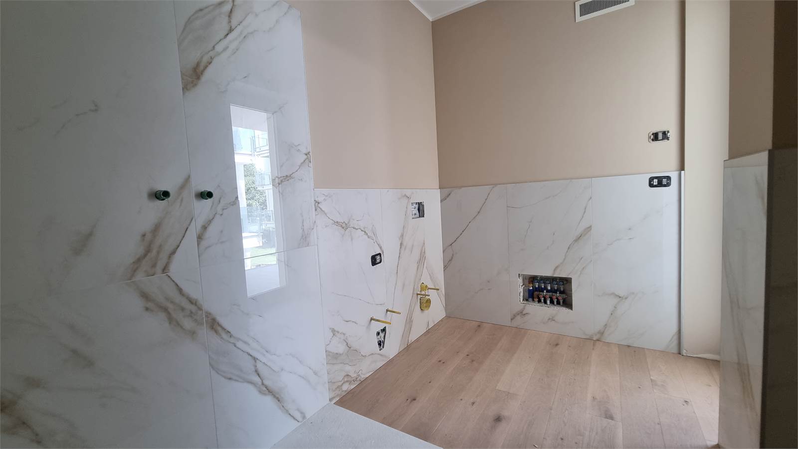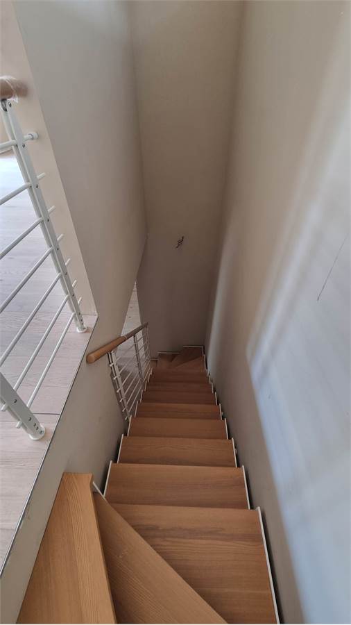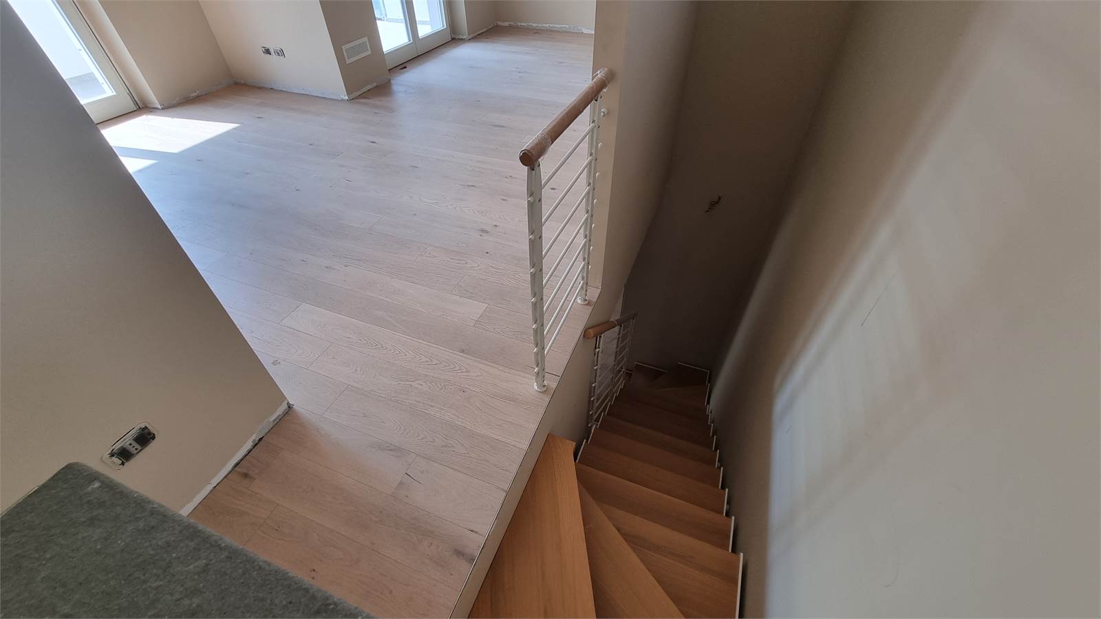 L'APPARTAMENTO HA ESPOSIZIONE EST - OVEST - NORD, ED E' COSI' COMPOSTO: INGRESSO AL PIANO TERRA NEL VANO SCALA CON UN ACCESSO ESCLUSIVO AL PORTICATO PRIVATO E ACCESSO CON ASCENSORE O SCALE AL PIANO SECONDO DOVE C'E' L'INGRESSO SU SOGGIORNO CON CUCINA LIVING, DISIMPEGNO E WC COLLEGATO CON UNA SCALA INTERNA AL PIANO PRIMO CON DUE CAMERE DA LETTO, DISIMPEGNO, DOPPI SERVIZI E BALCONE.