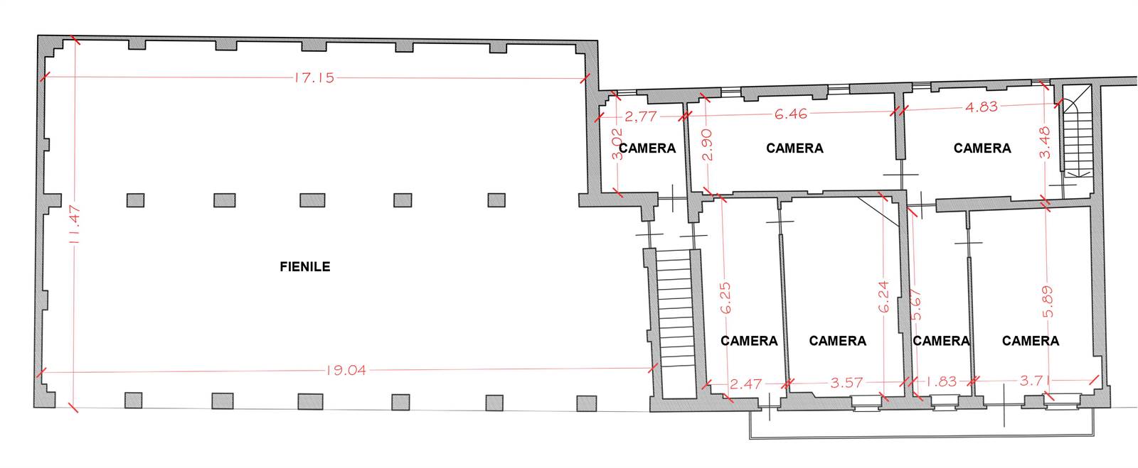 Di fianco all'abitazione c'è una grande stalla di mq. 180 con sopra il fienile di mq. 190, con accesso dalla scala interna della casa.
