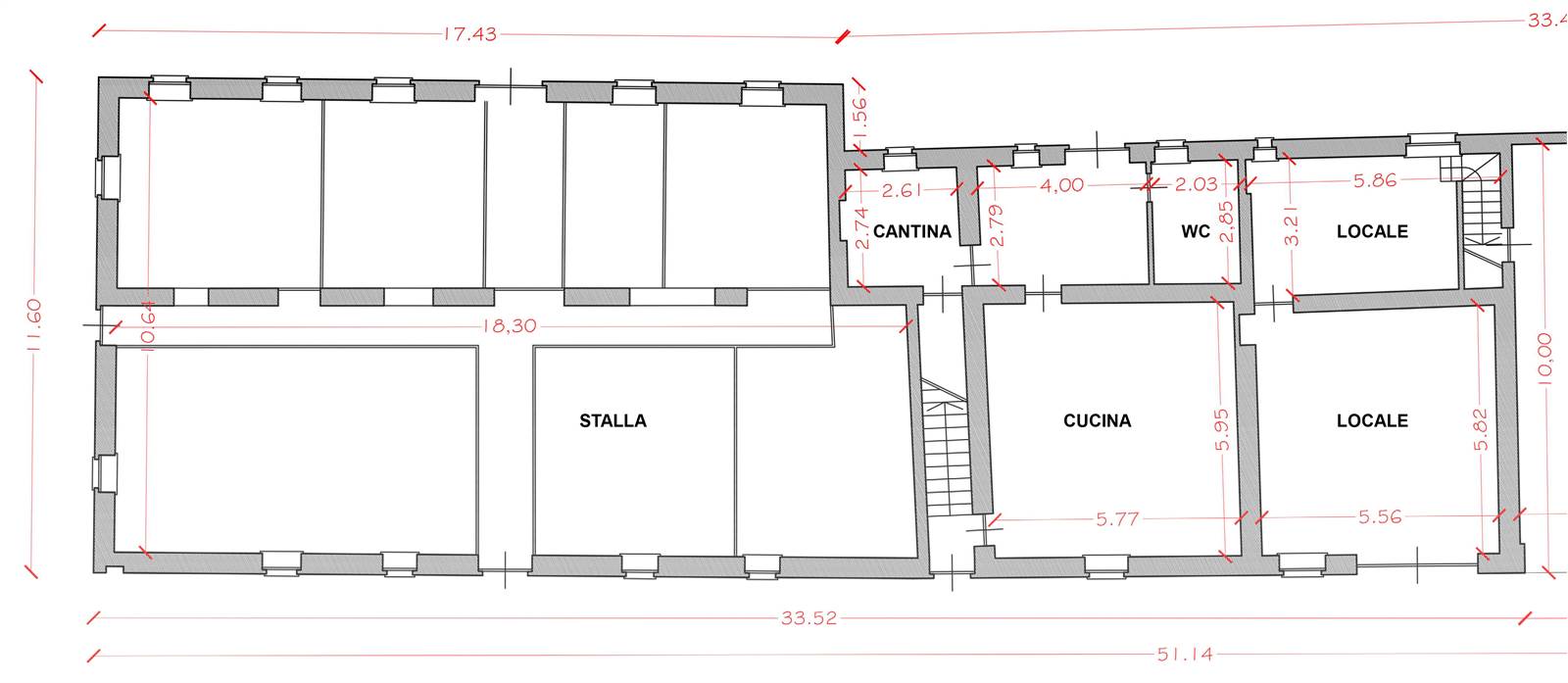 La parte abitativa è composto al piano terra da grande cucina, salone, locali cantina, bagno. Al piano primo altri 6 locali e balcone.